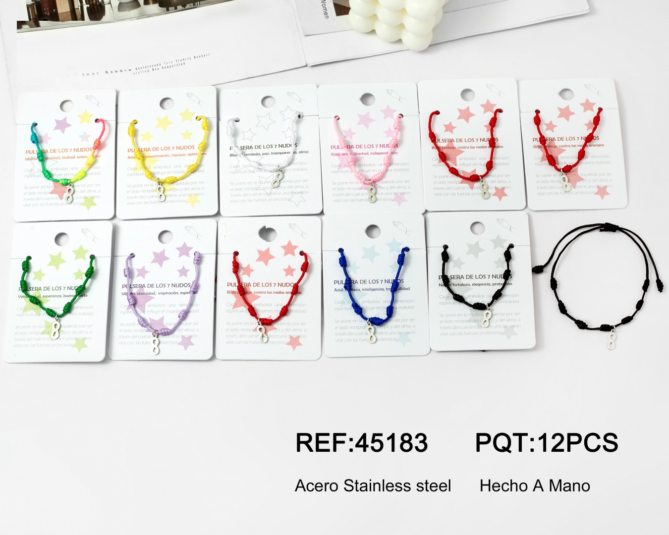 Pulsera Cuerda 7 Nudos Charm Infinito Plata