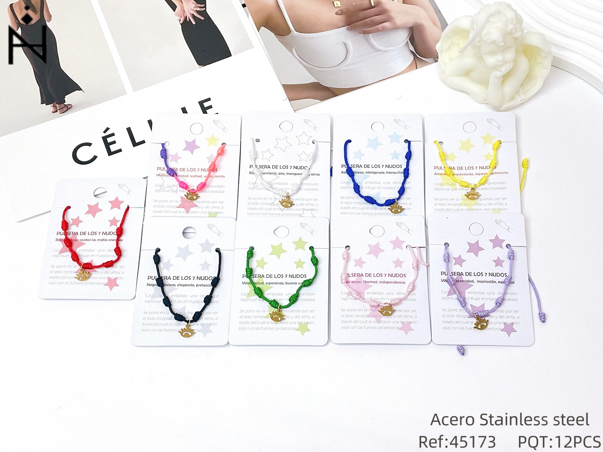 Pulsera Cuerda 7 Nudos Charm Ojo Turco Dorado
