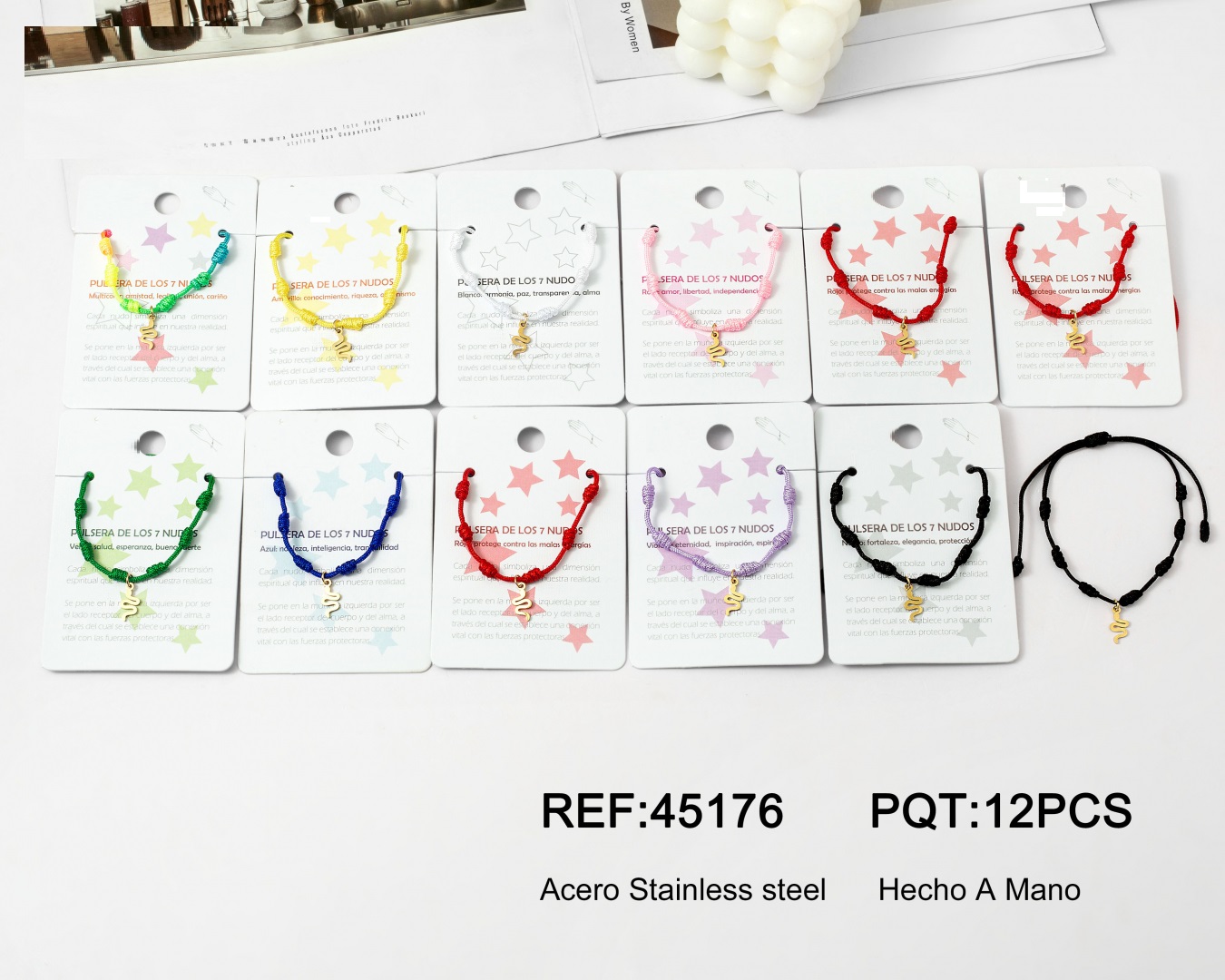 Pulsera Cuerda 7 Nudos Charm Serpiente Dorado