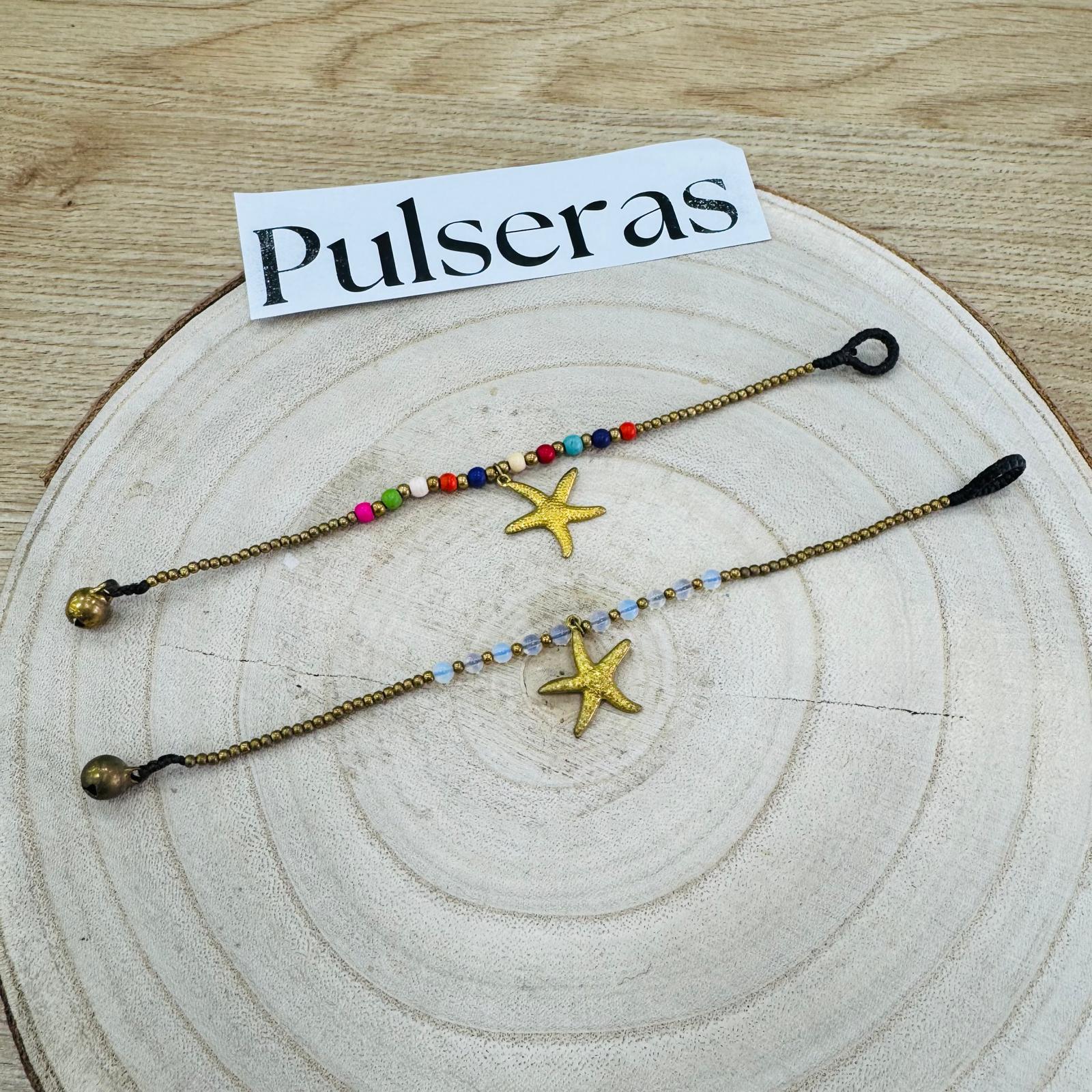 Pulsera Tailandia Bolitas Charm Dorado Estrella de Mar