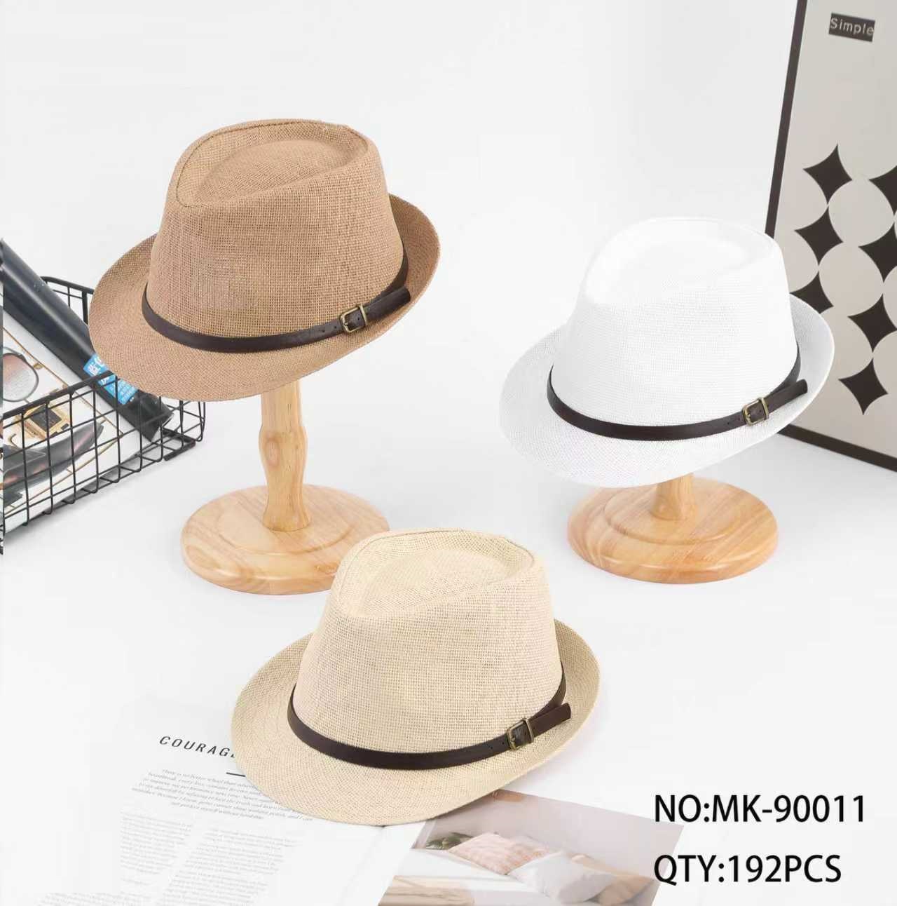 Sombrero Ala Corta de Paja con Cinturón Fino de Hebilla Marrón y Beige