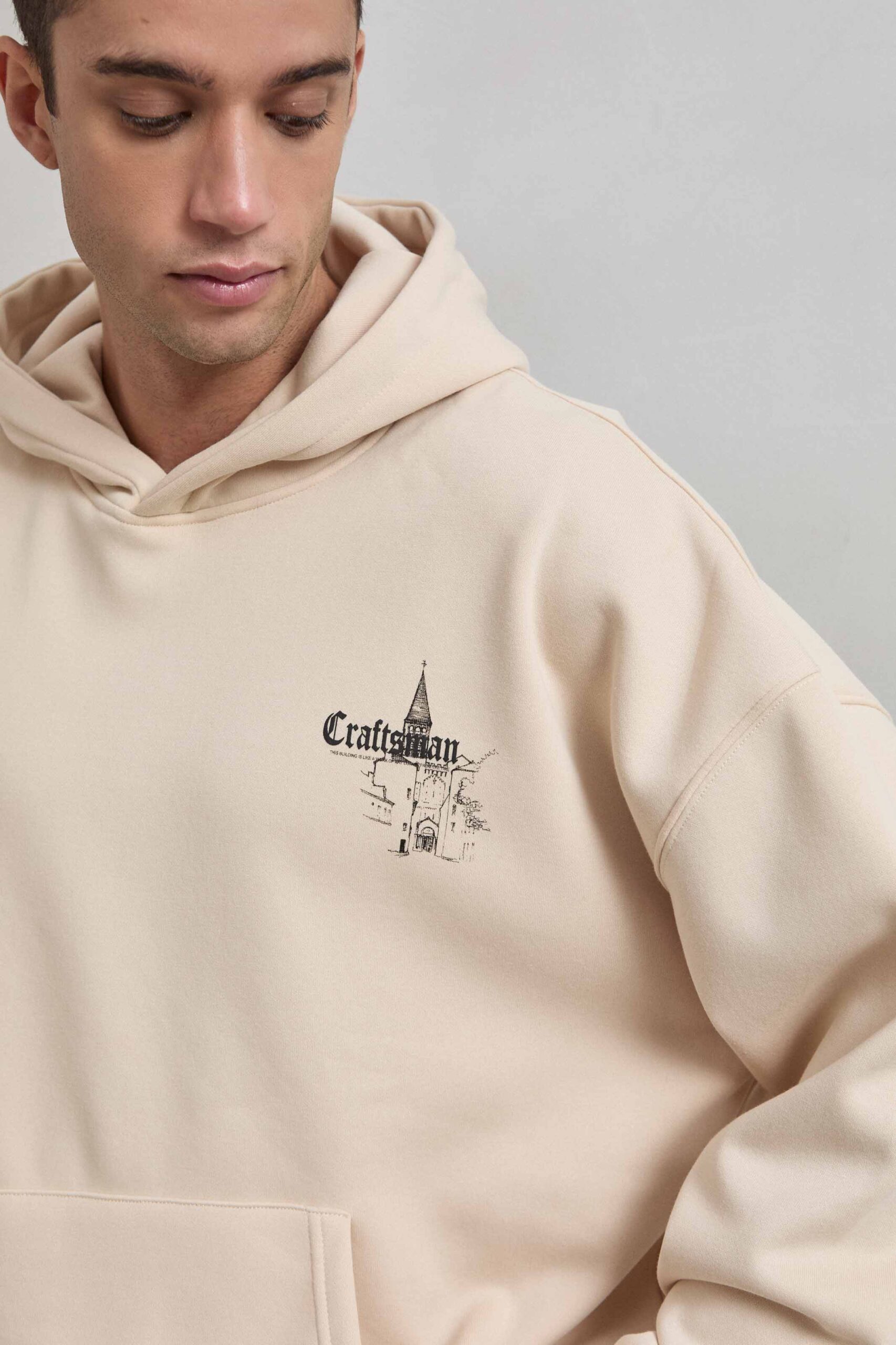 Sudadera Beige Oversize Afelpada Diseño Craftsman