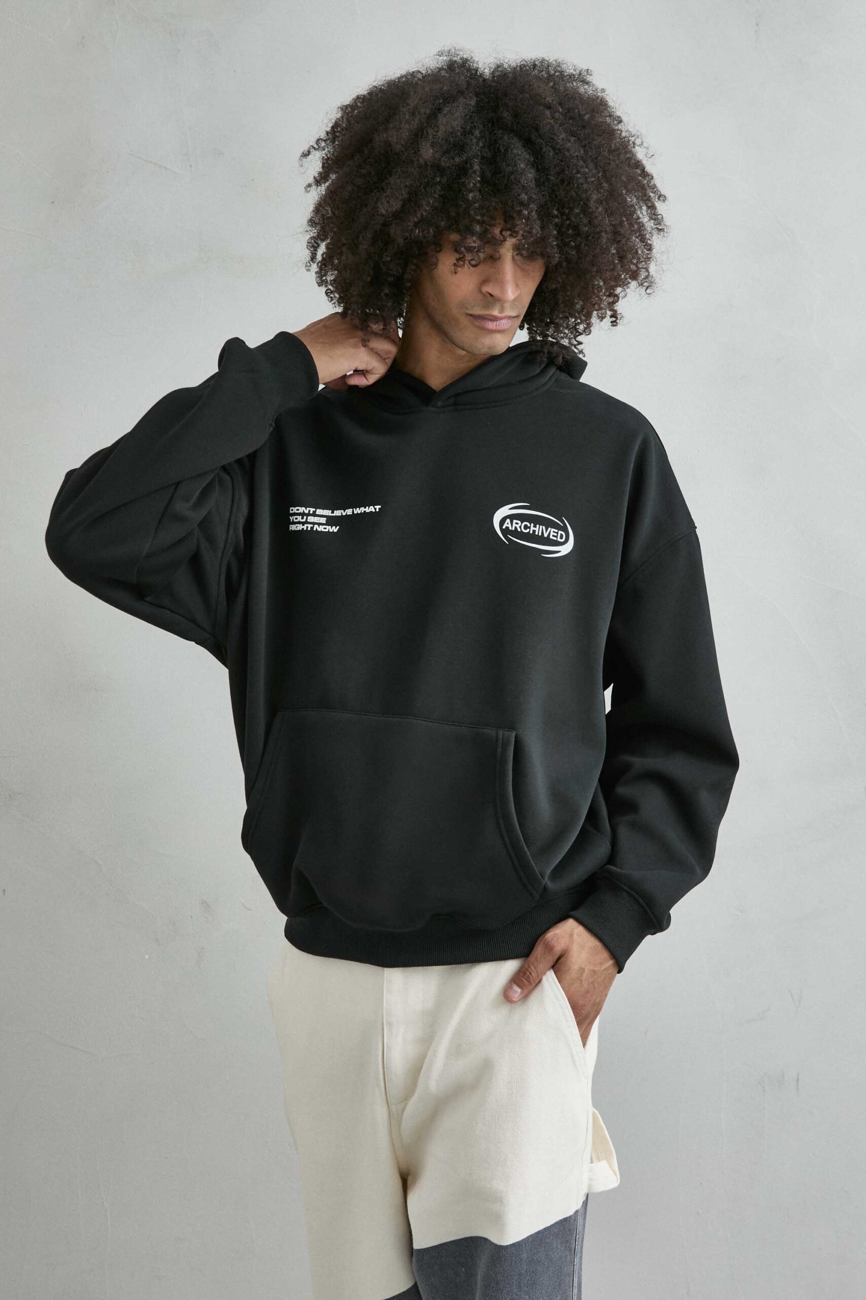 Sudadera Negra Oversize con Interior Forro Polar