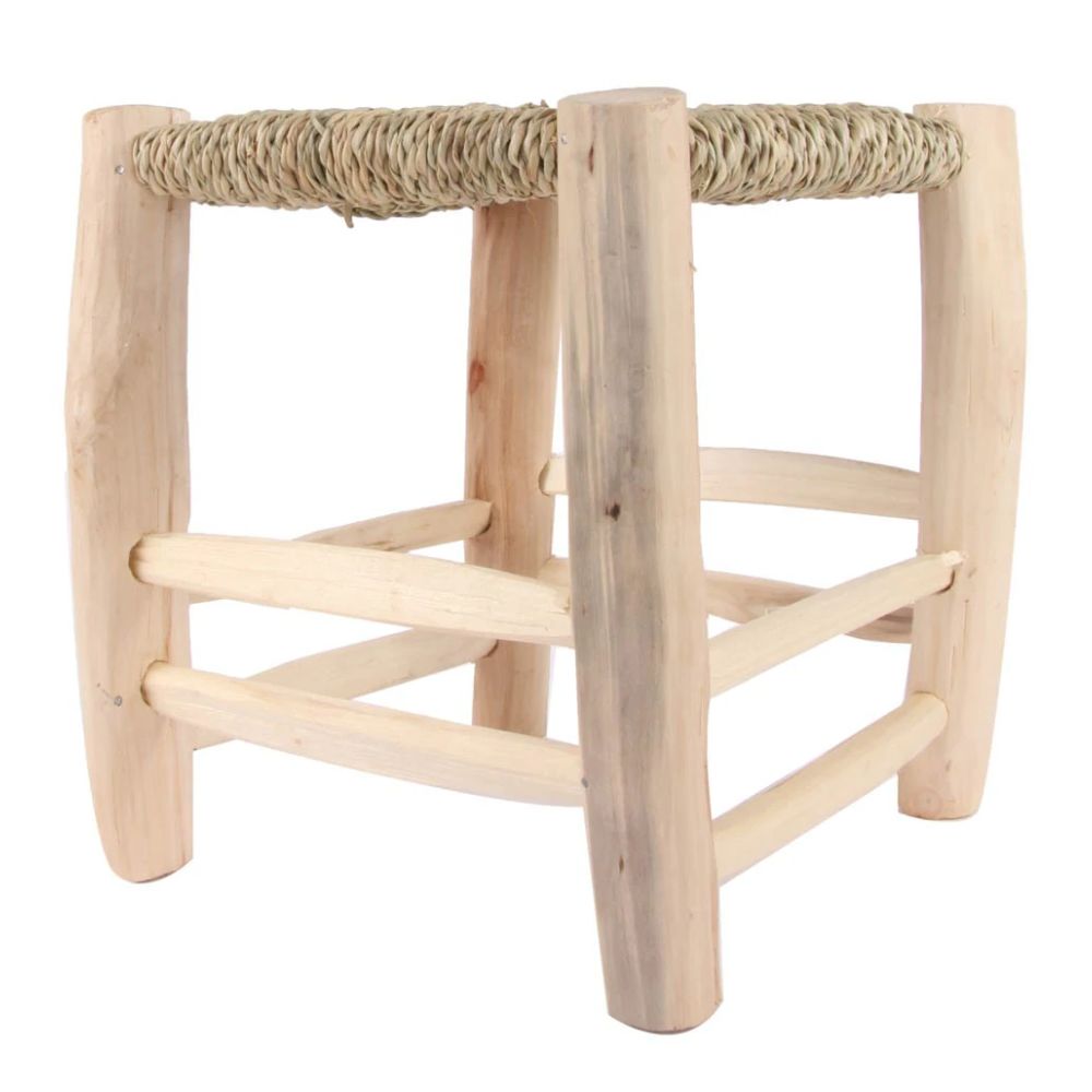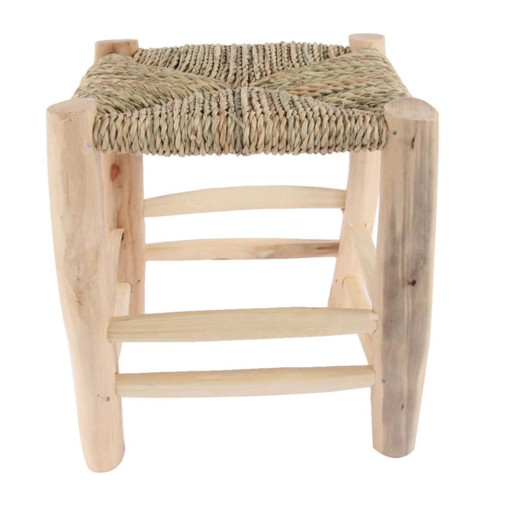 Taburete de Madera y Esparto Natural 20 x 20 cm
