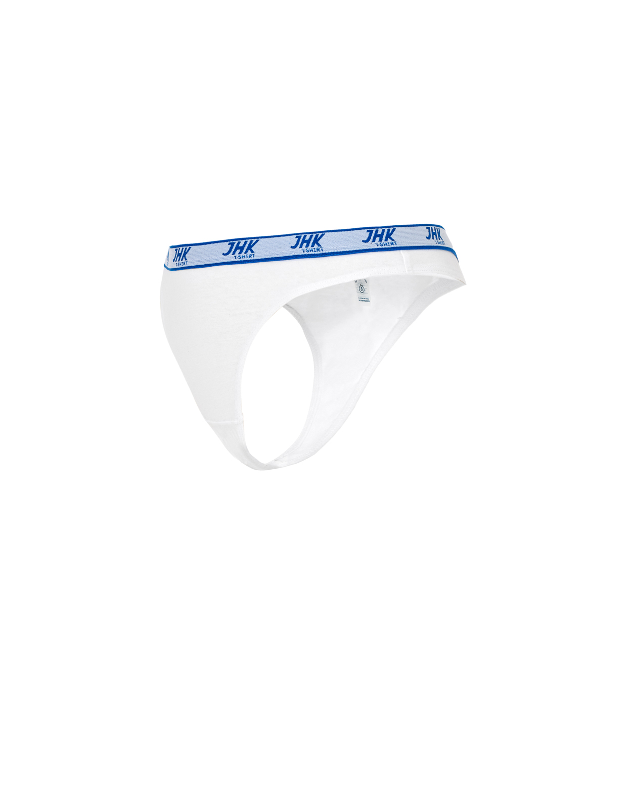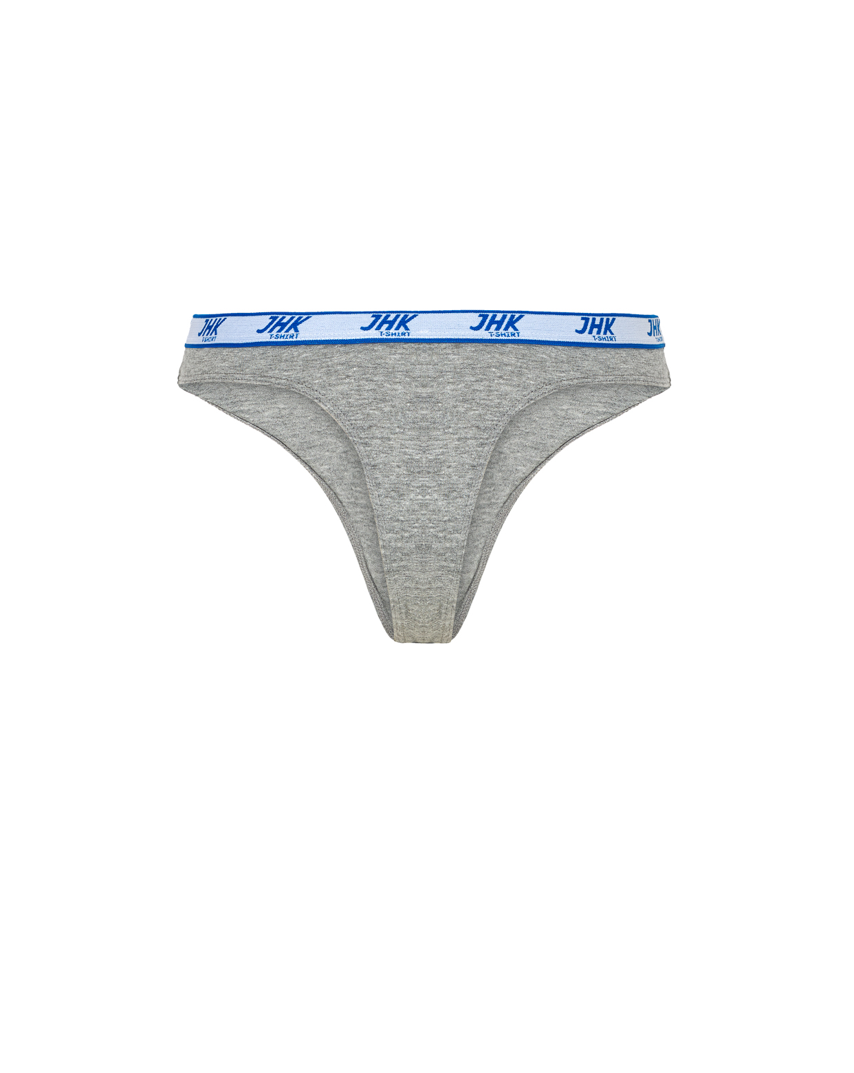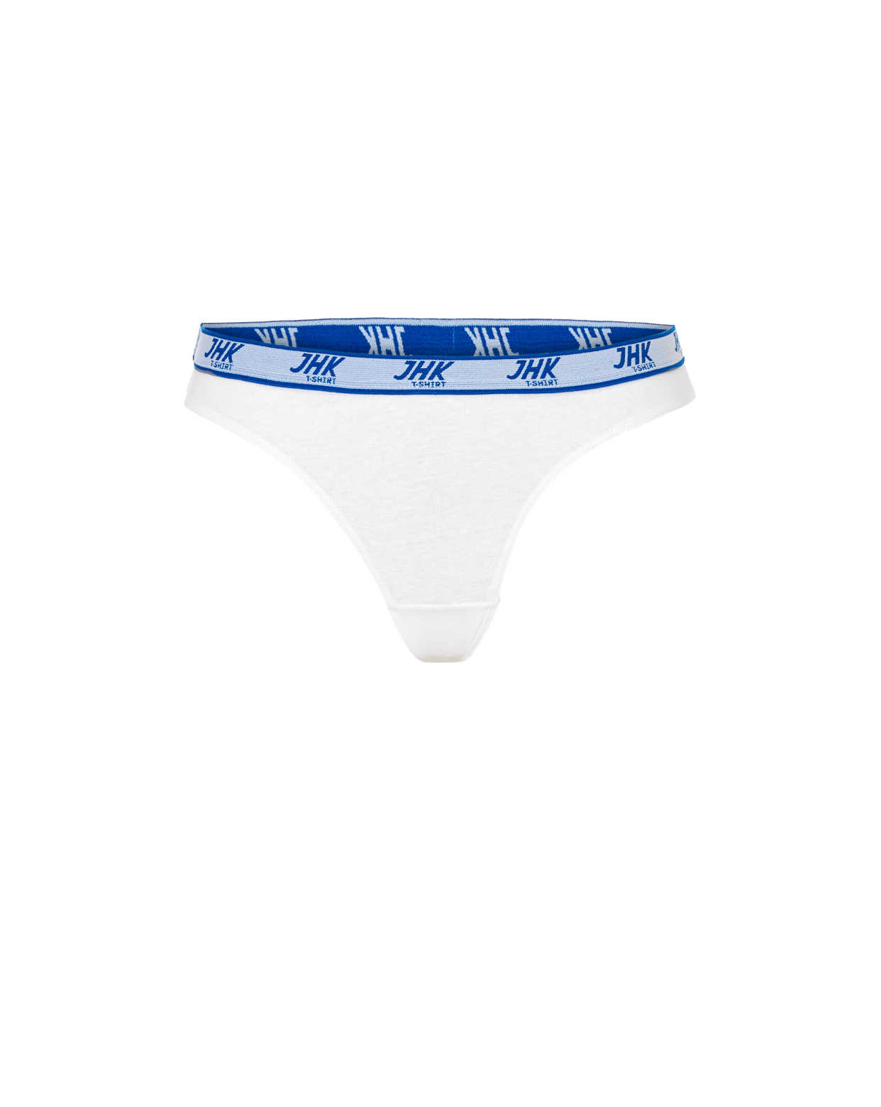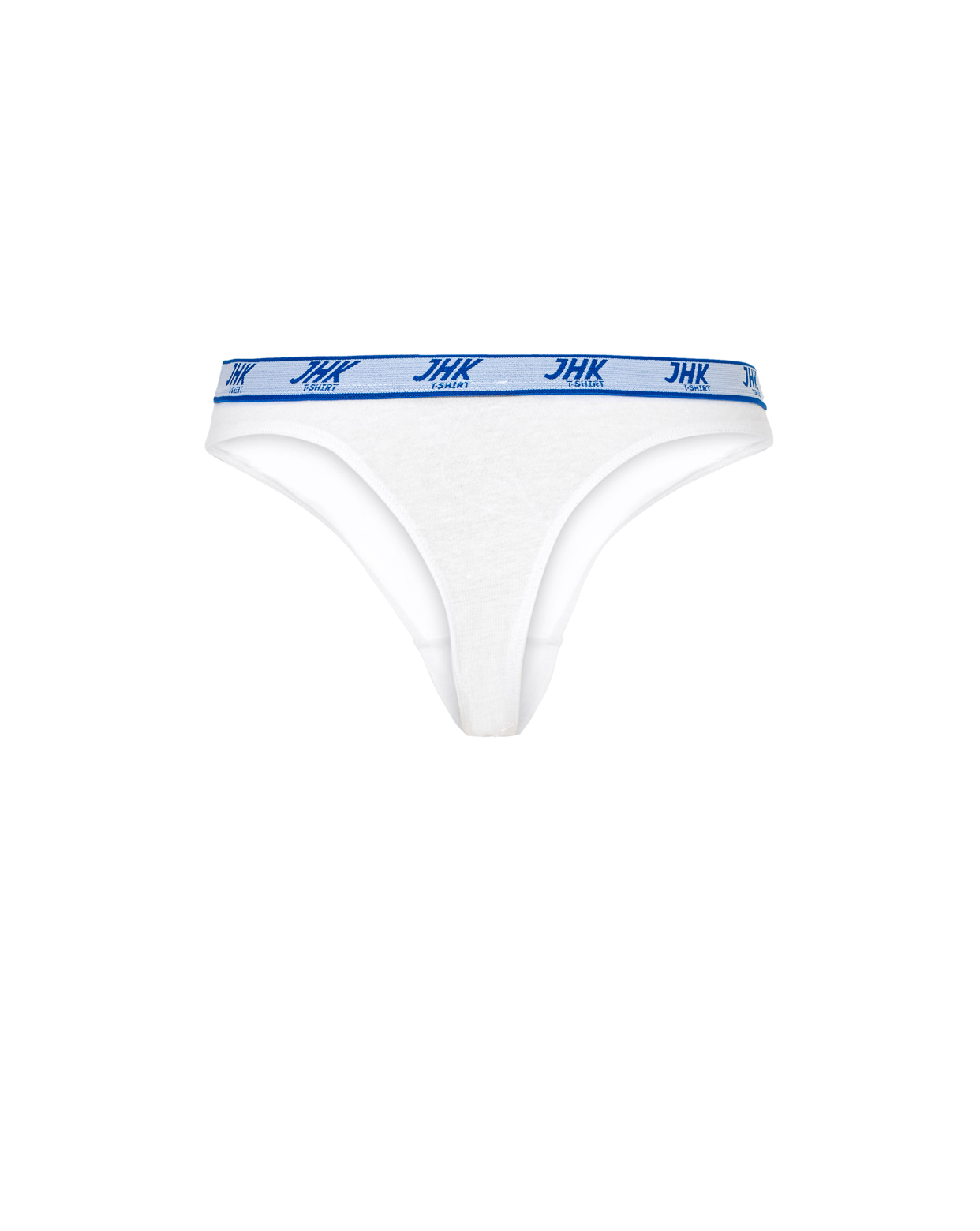 👕 Tanga de mujer con diseño de costura lateral y cinturilla elástica con logo JHK. Prenda interior confeccionada en tejido cotton blend de alta calidad, ideal para catálogos de ropa interior femenina y colecciones de lencería básica.