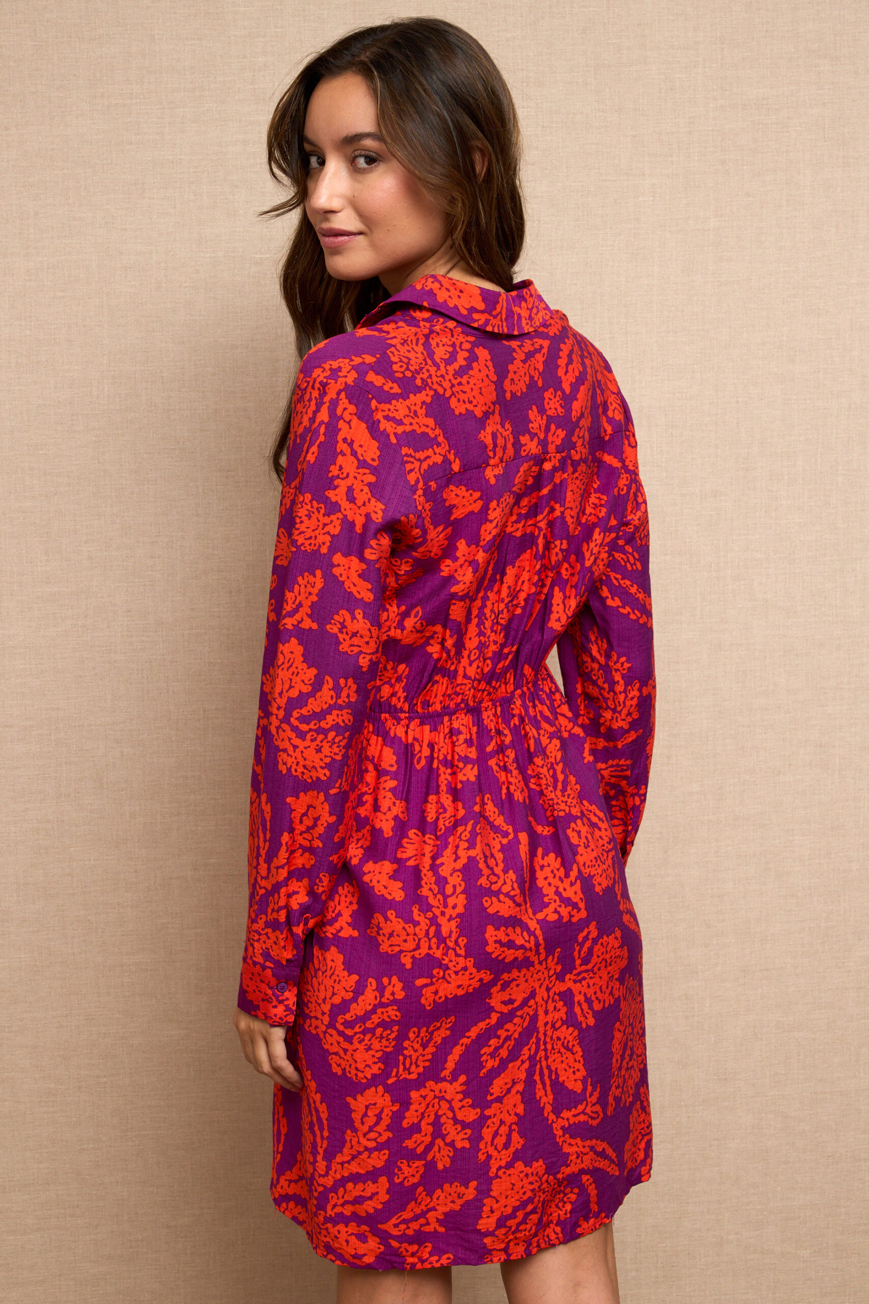 Vestido Camisero Corto Estampado Manga Larga Escote Cruzado