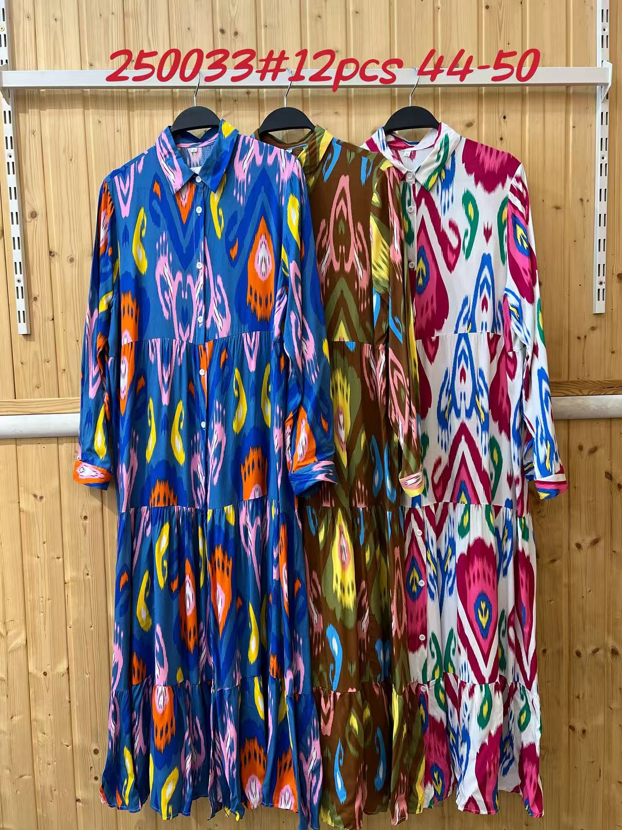 Vestido Camisero Largo Estampado Manga Larga