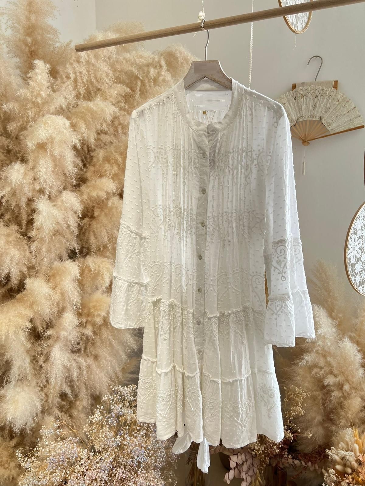 Vestido Camisero Plumeti Bordado Corto