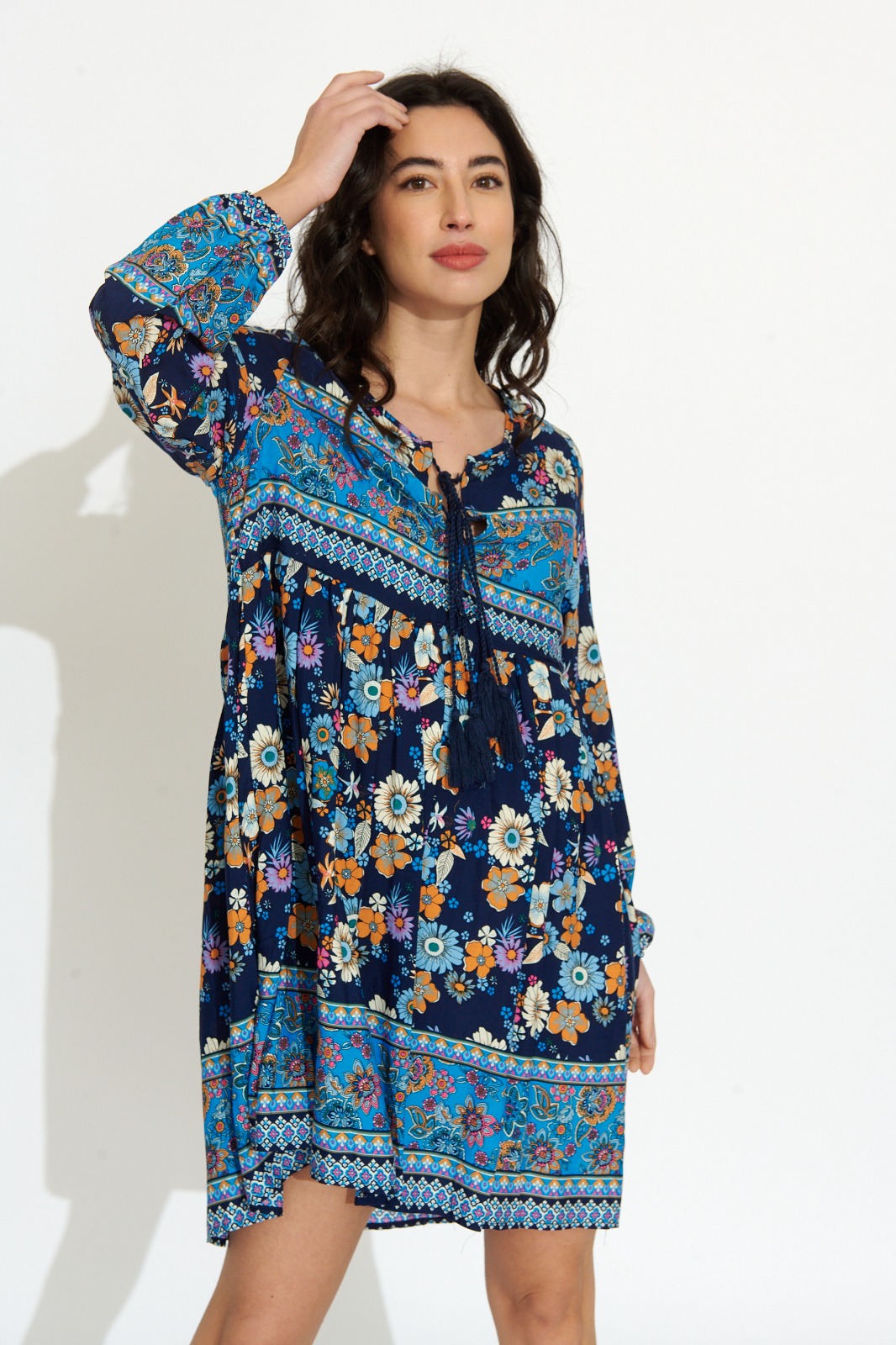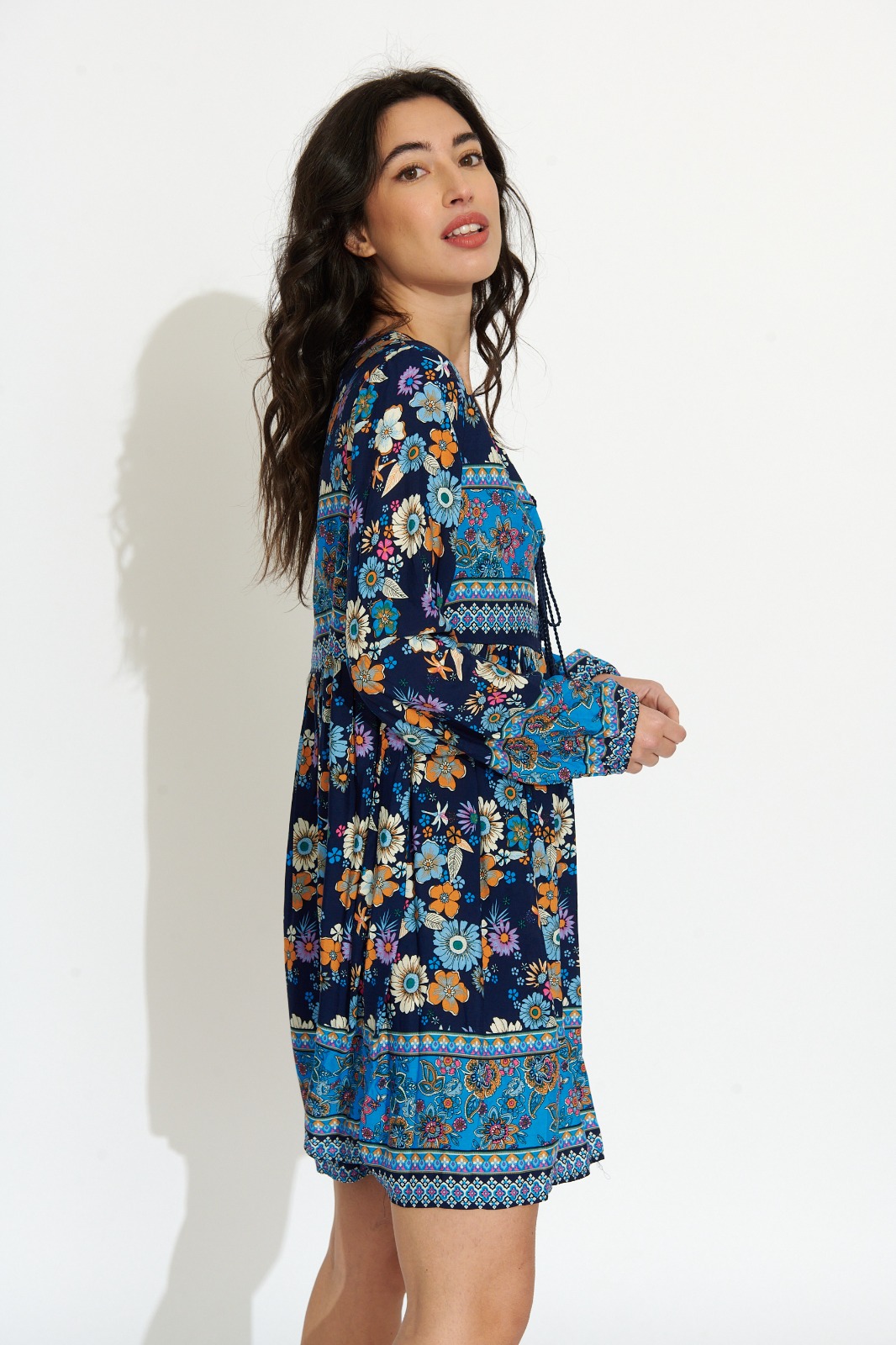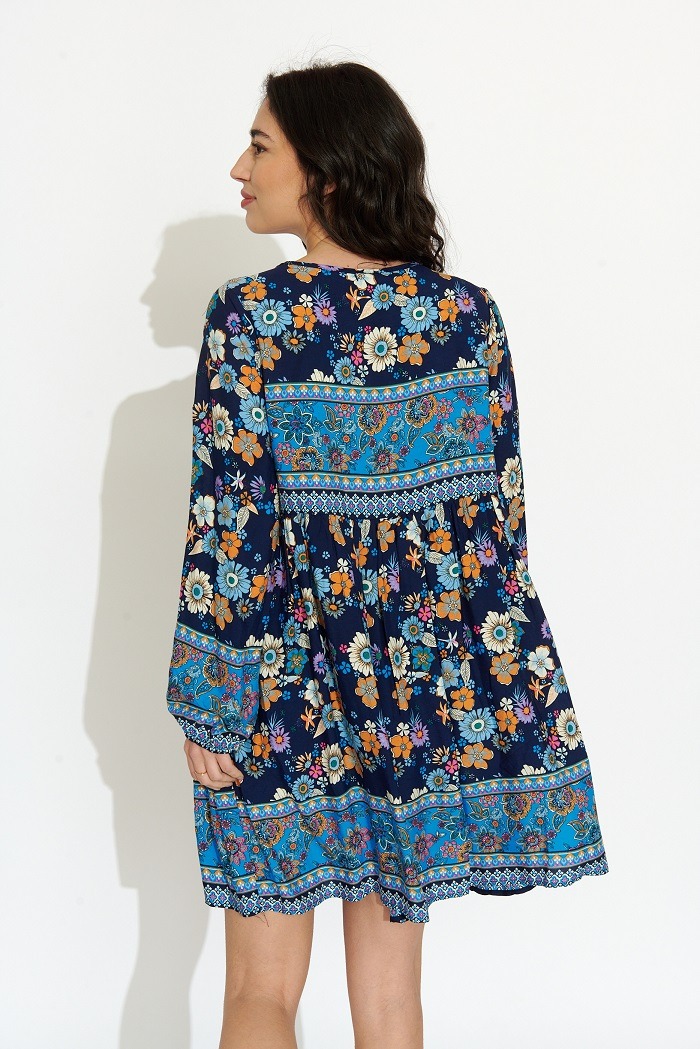 Vestido Corto Azul Oscuro Estampado Flores