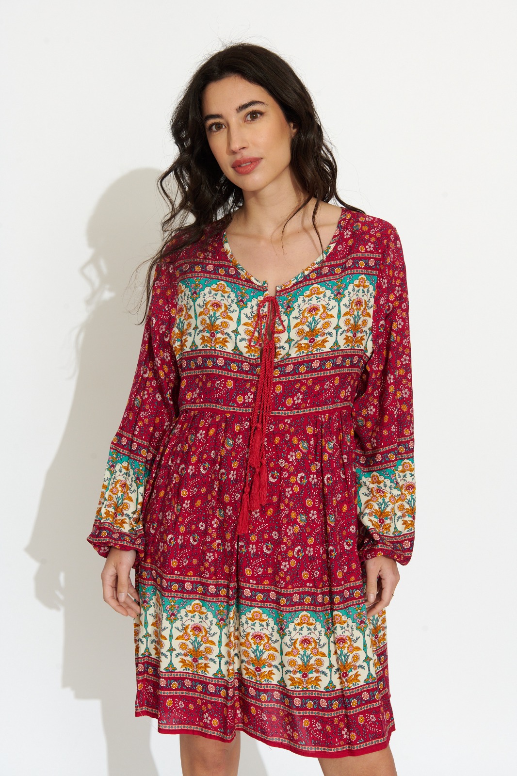 Vestido Corto Burdeos Estampado Étnico