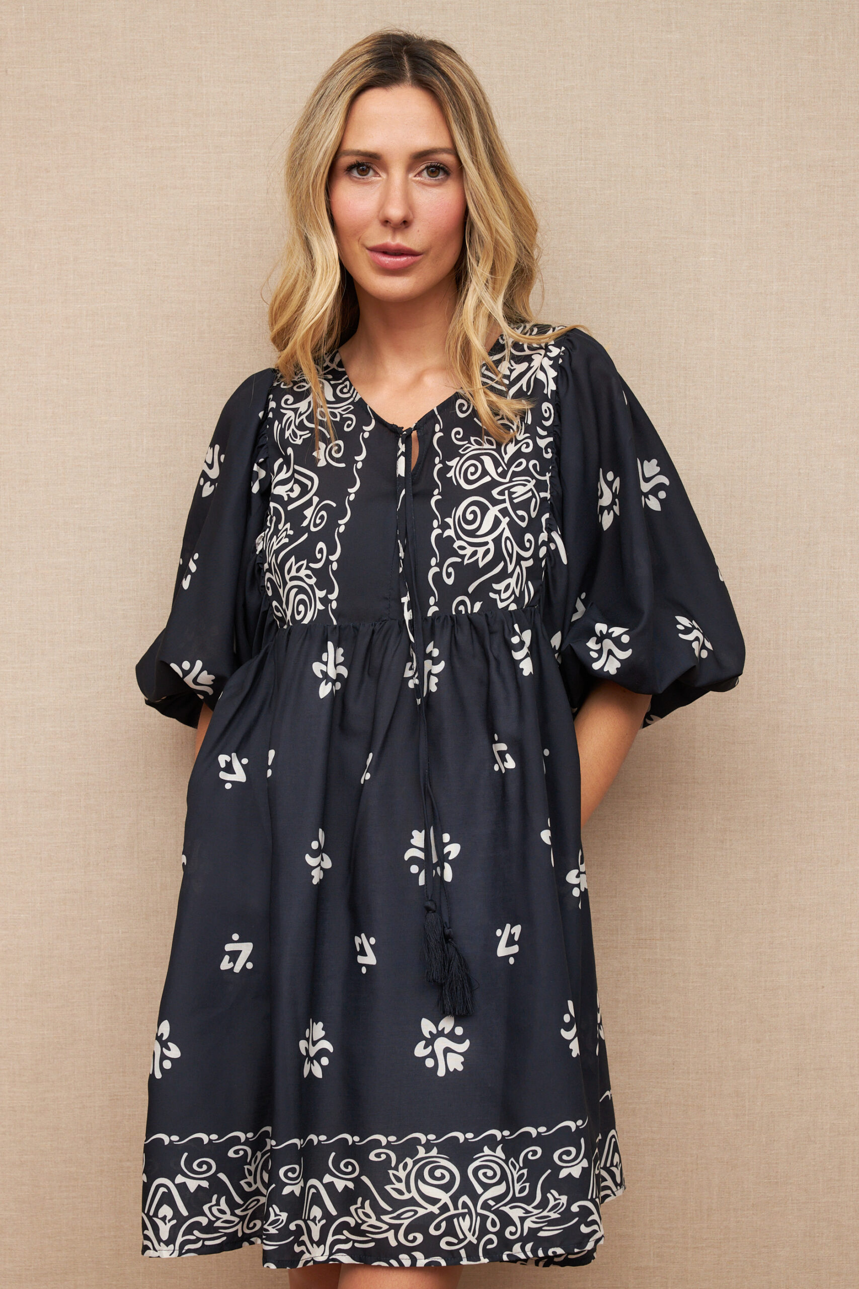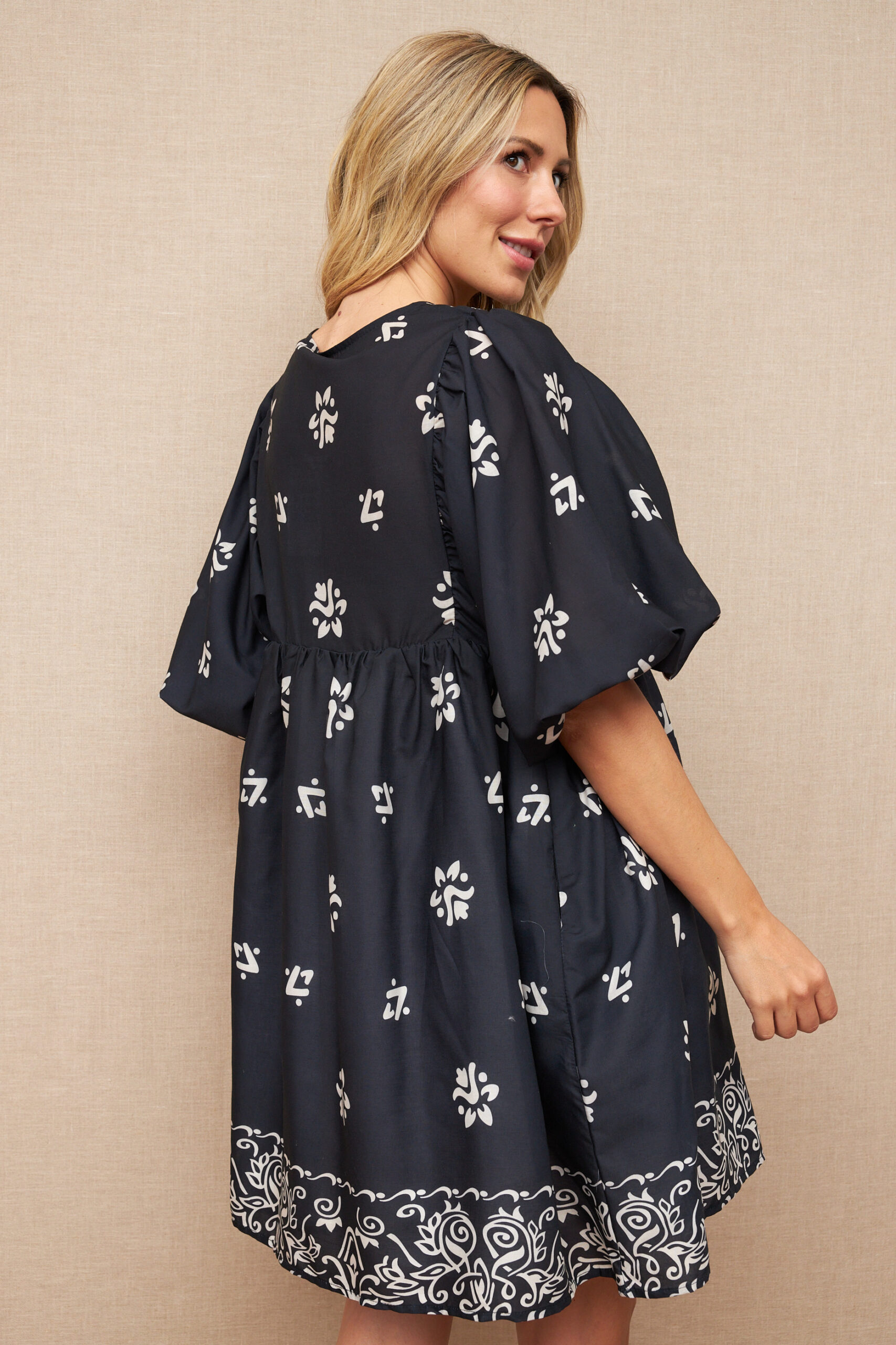 Vestido Corto Azul Estampado Escote Redondo con Tiras