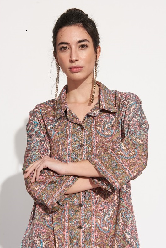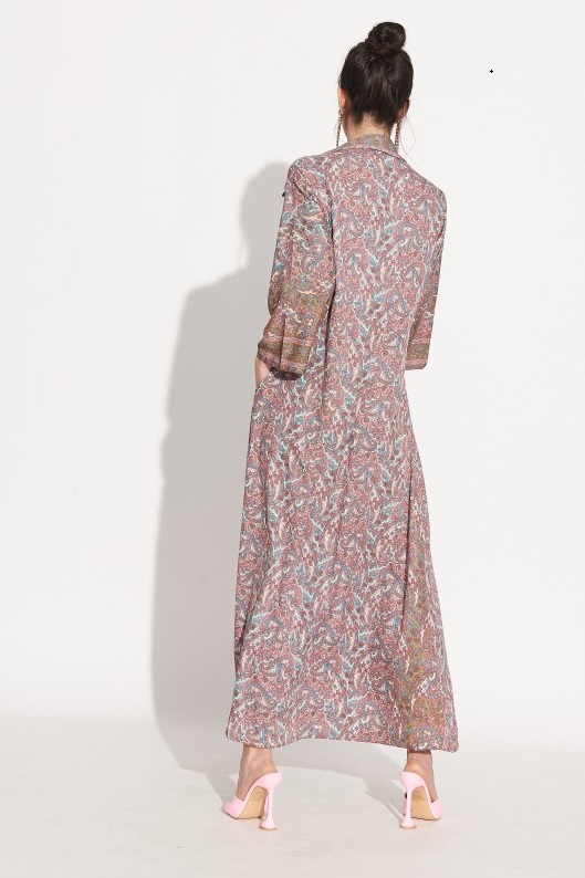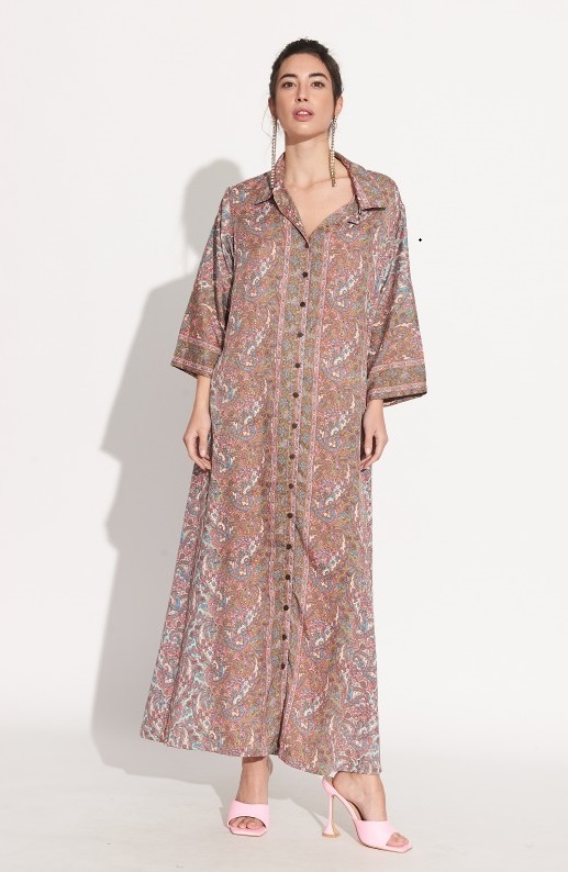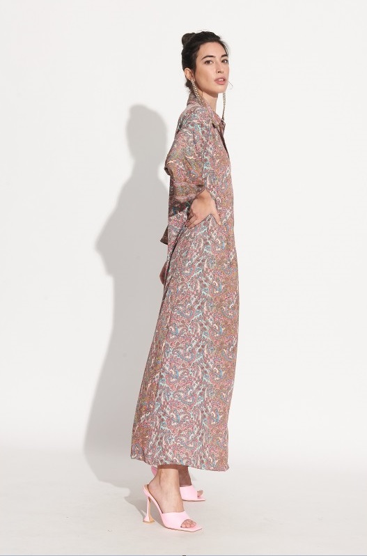 Vestido Largo Camisero Seda Rosa Estampado