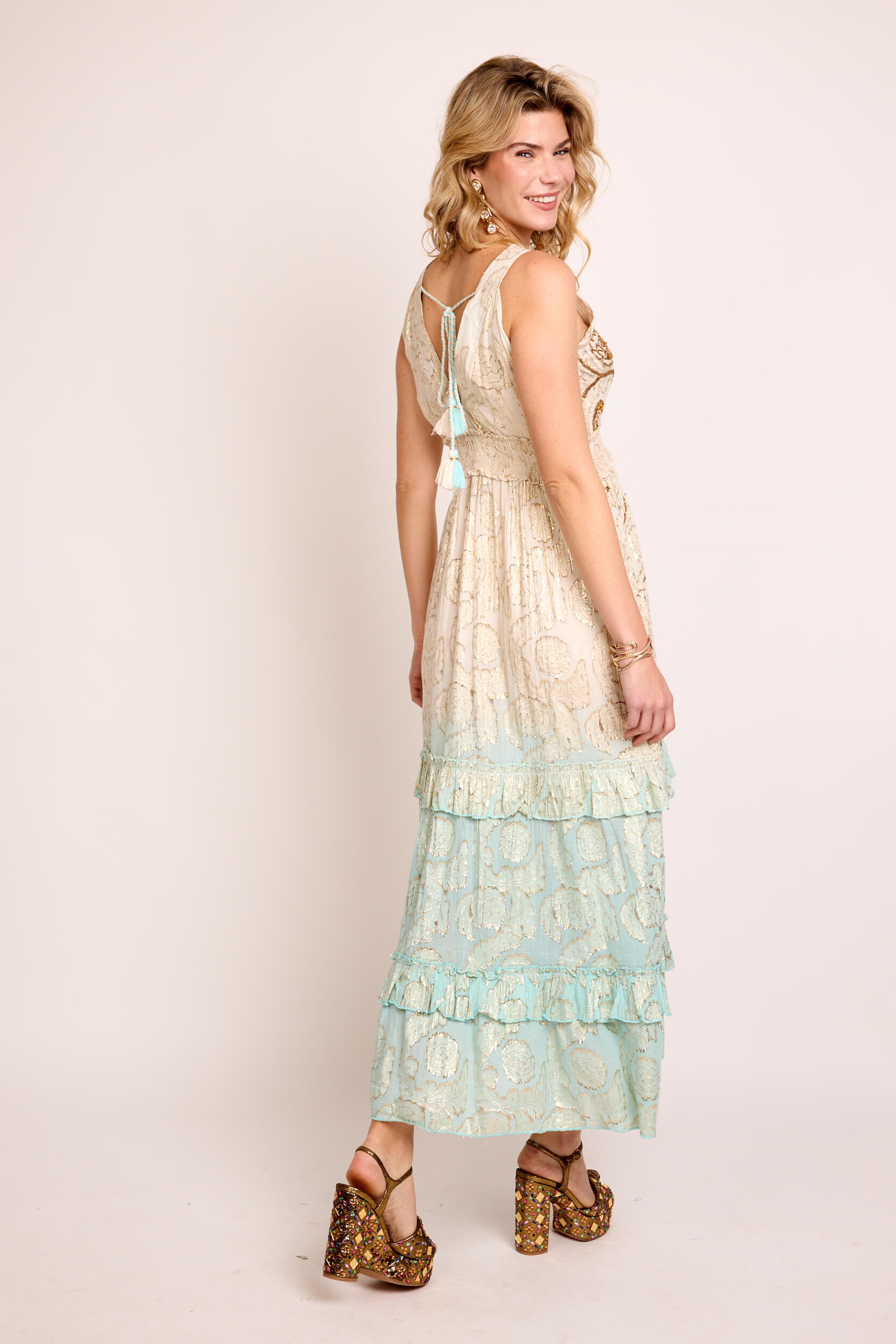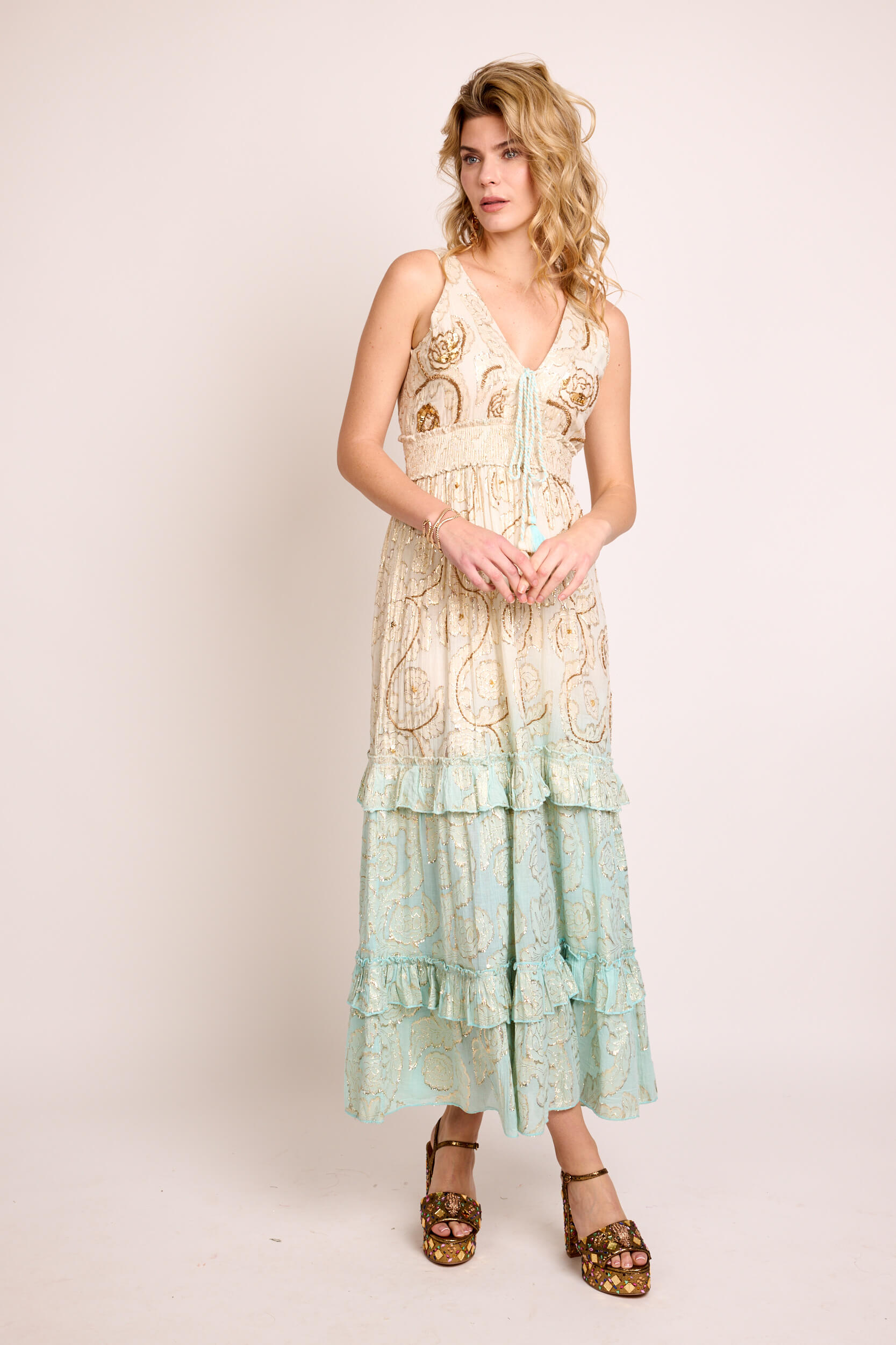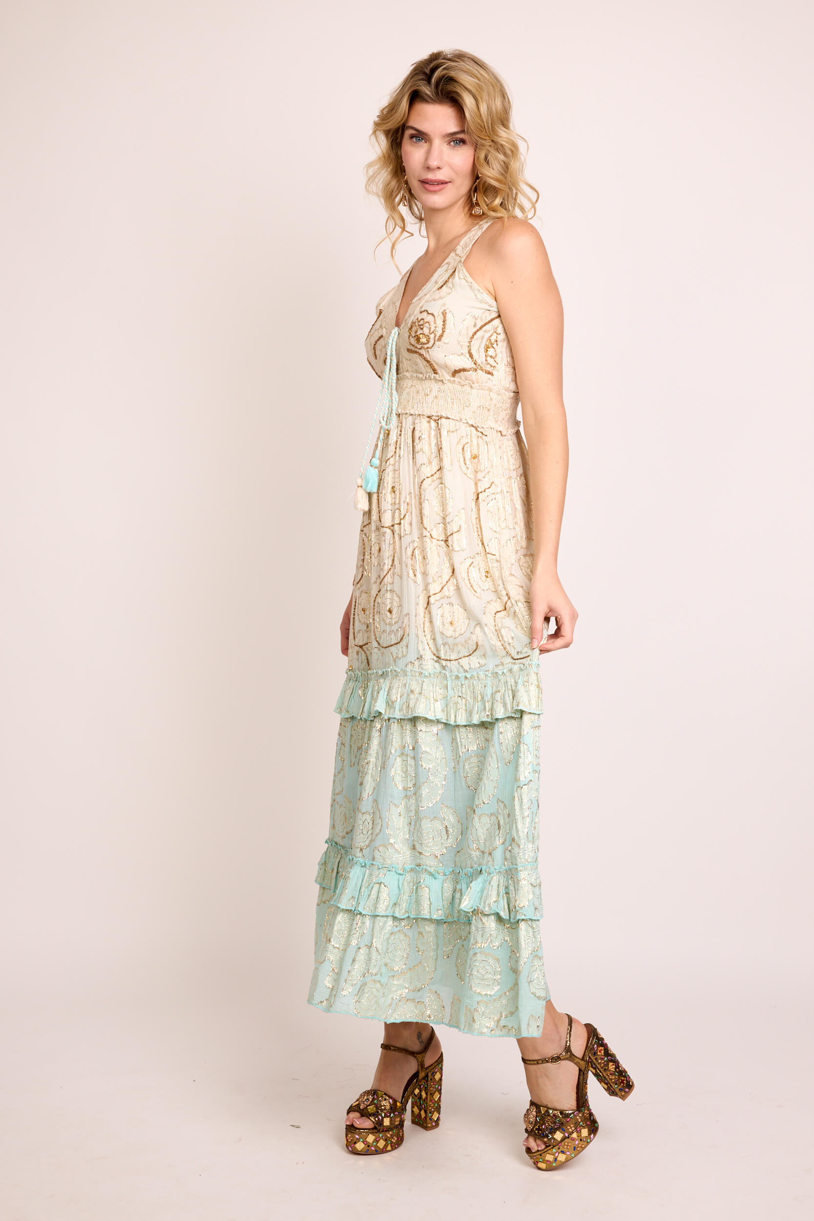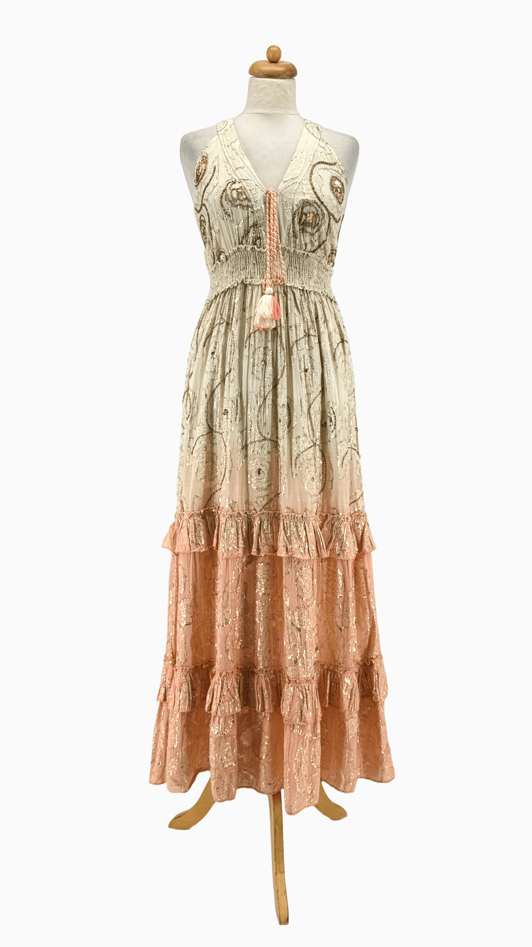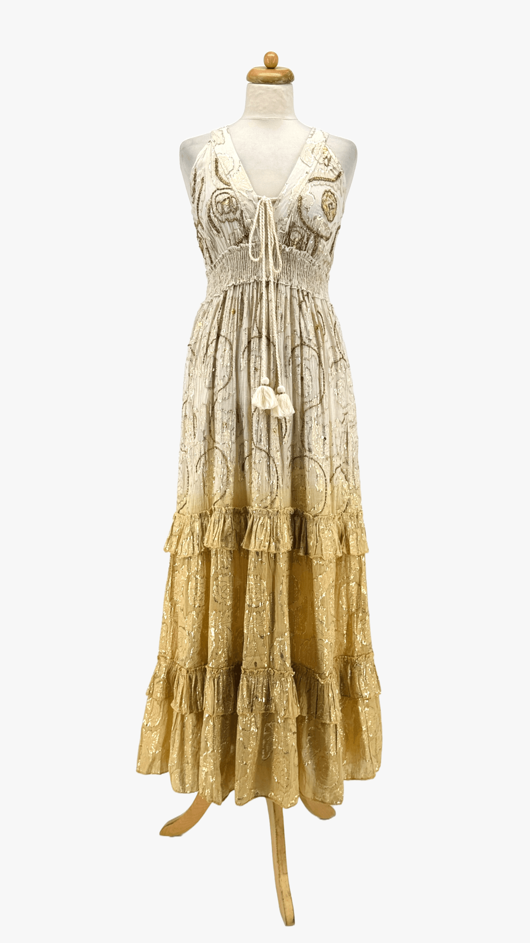 Vestido Largo Lurex Tie Dye Bordado