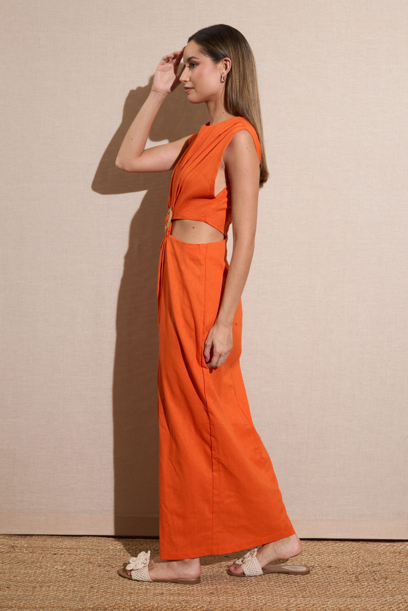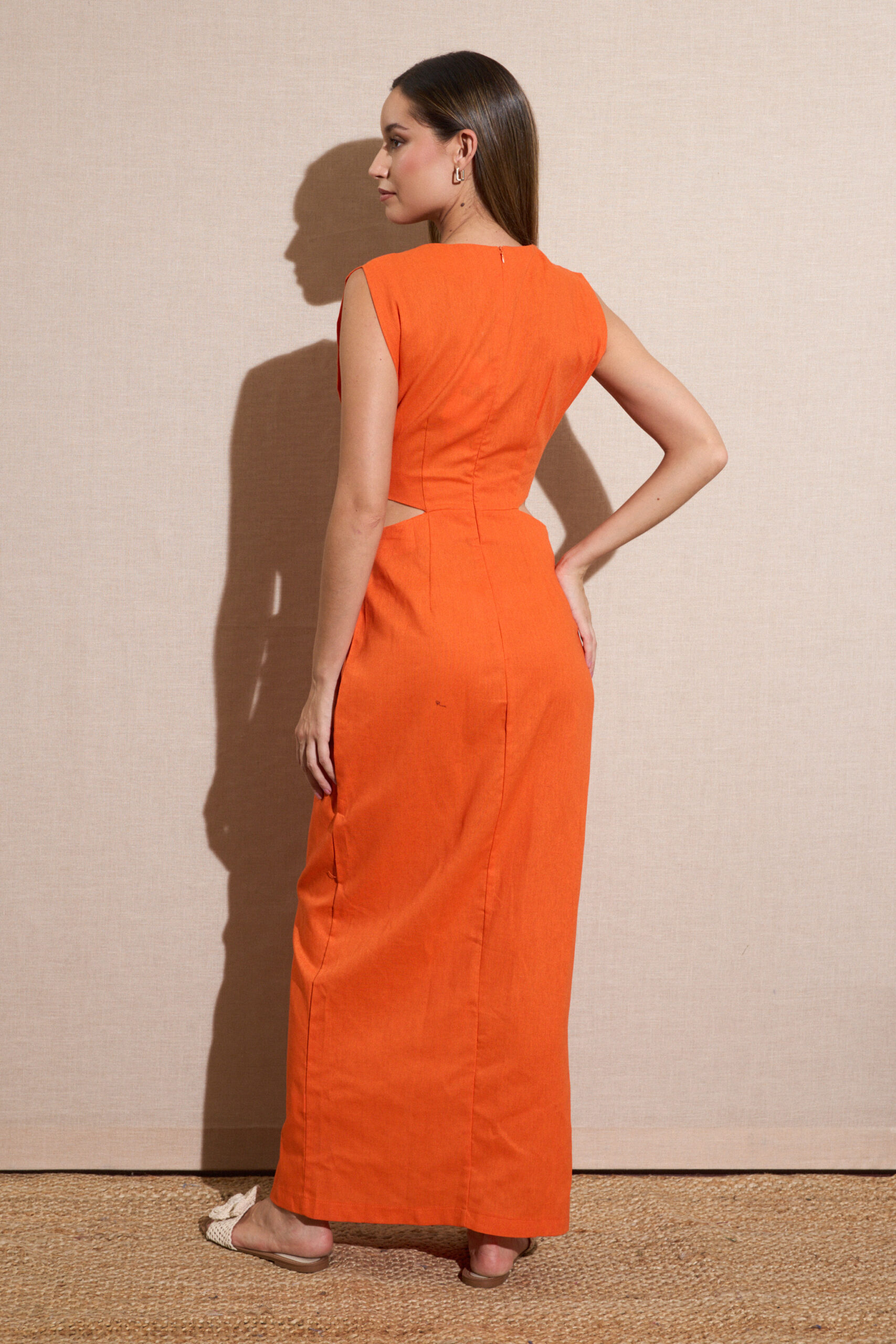 Vestido Largo Naranja Efecto 2 Piezas