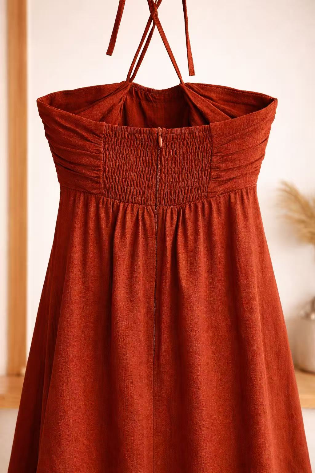 Vestido Largo Terracota Lino