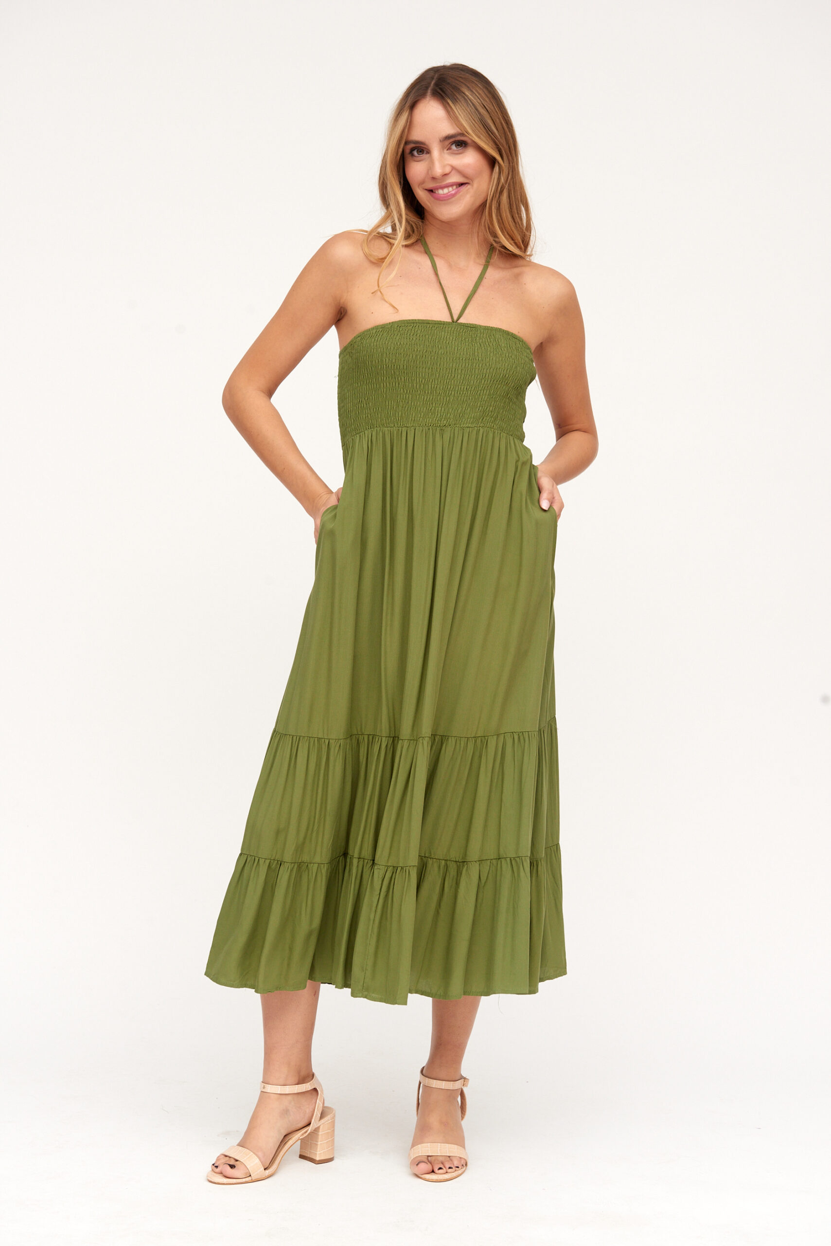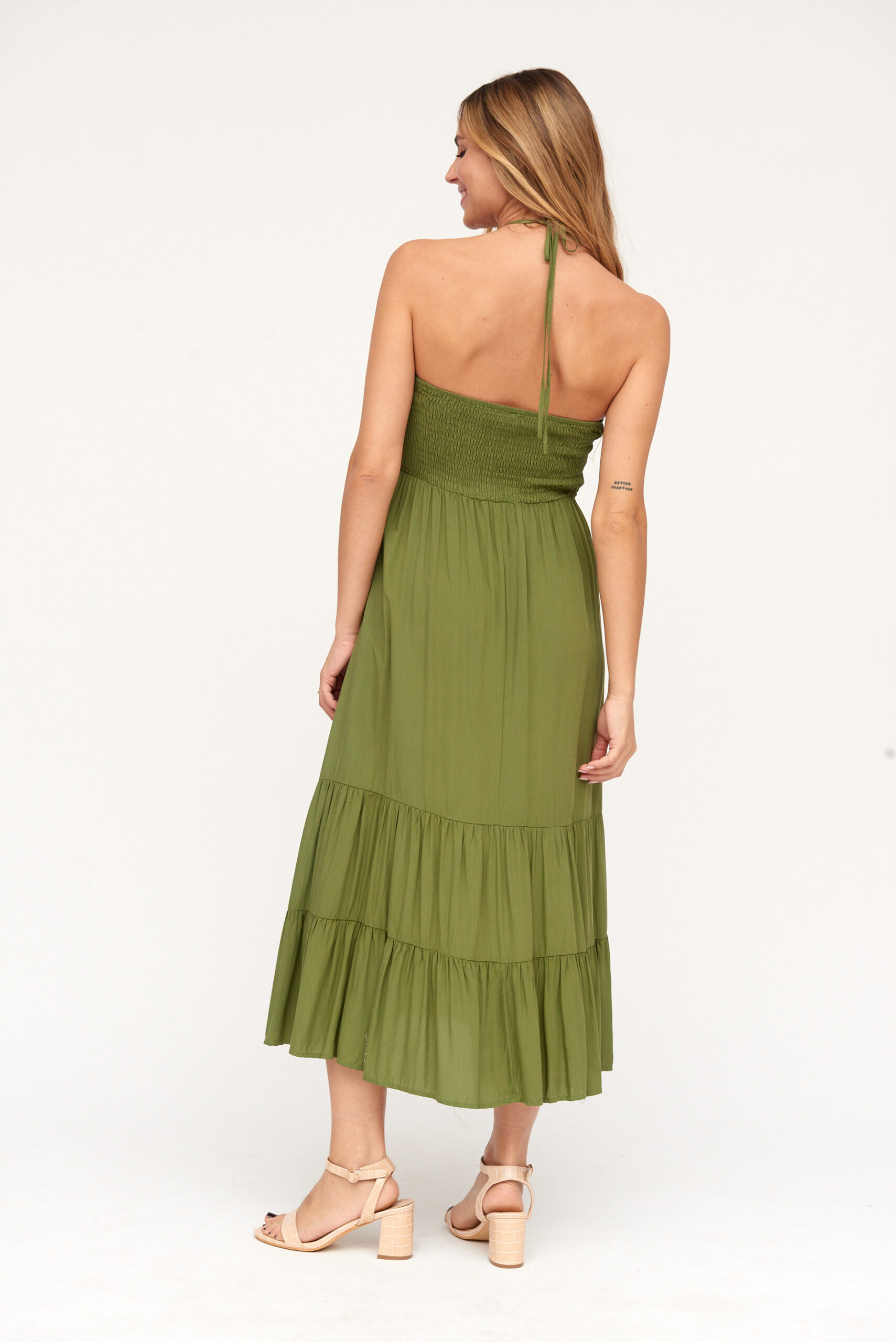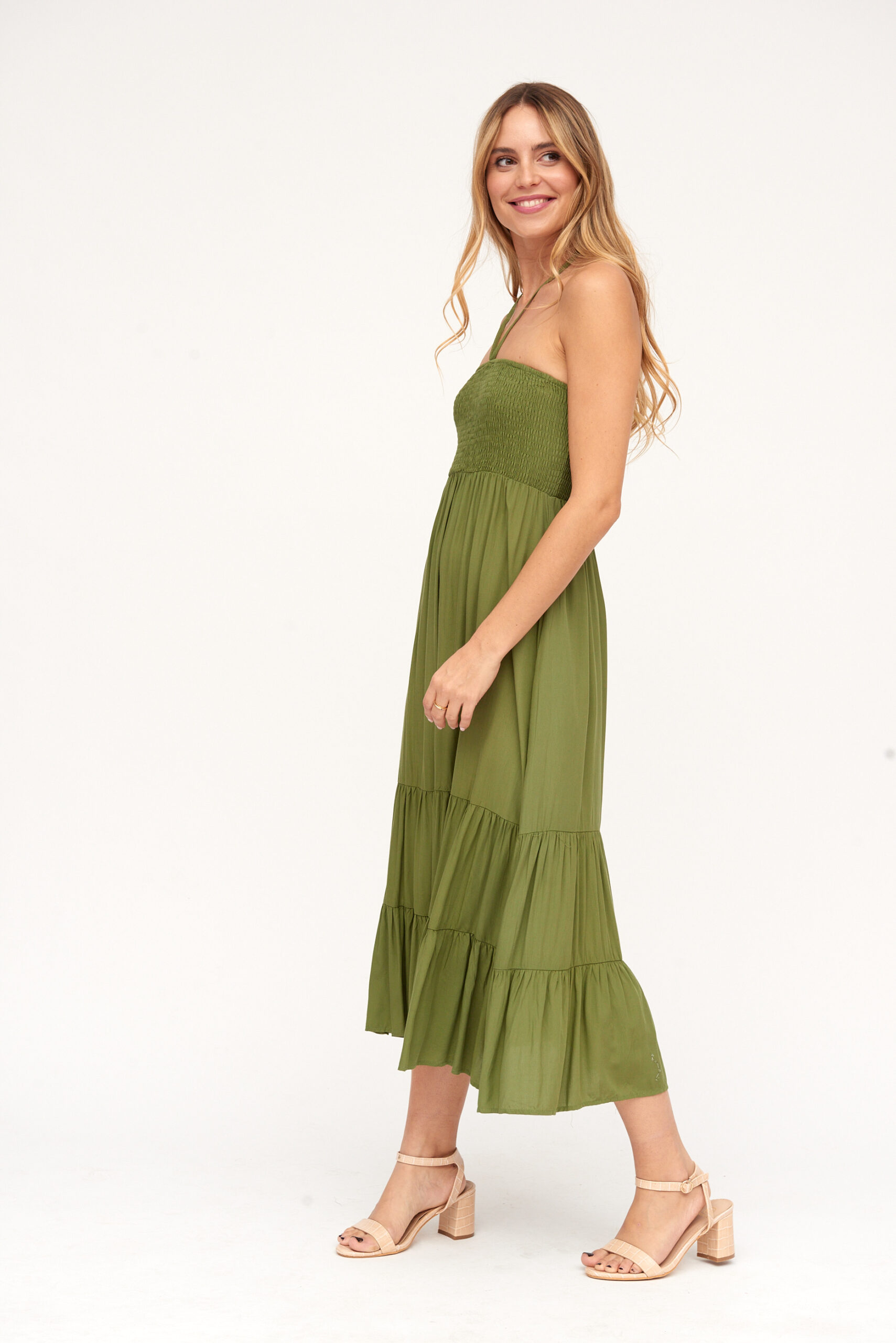 Vestido Midi Verde Atado Cuello
