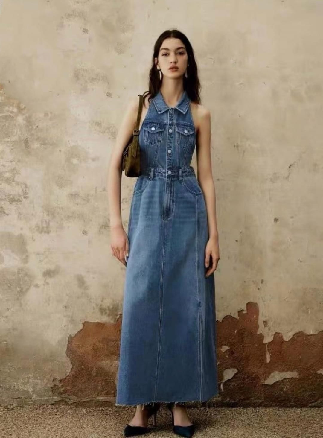 Vestido Vaquero Largo Cuello Halter