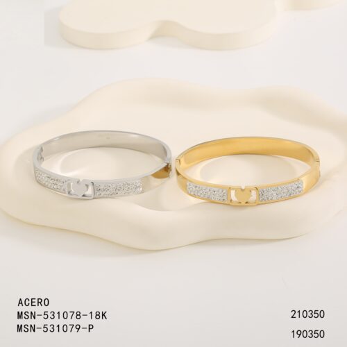 Pulsera Rígida Acero Circonitas Corazón