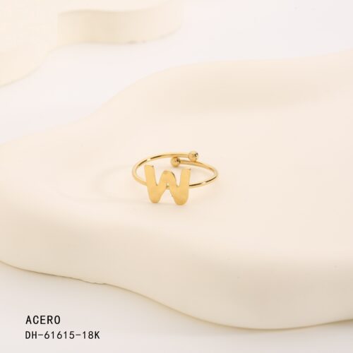 Anillo Acero Dorado Inicial “W”