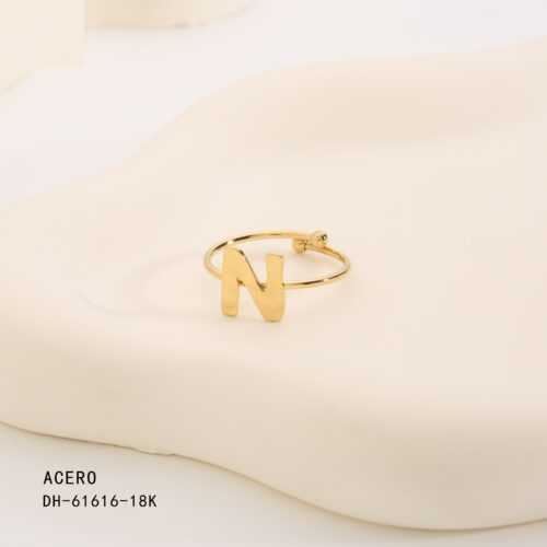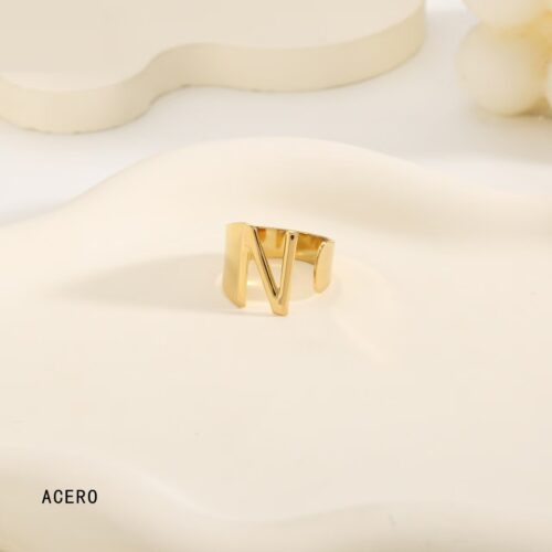 Anillo Acero Dorado Inicial “N”