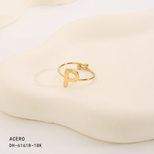 Anillo Acero Dorado Inicial “P”