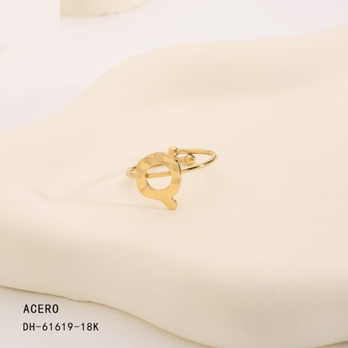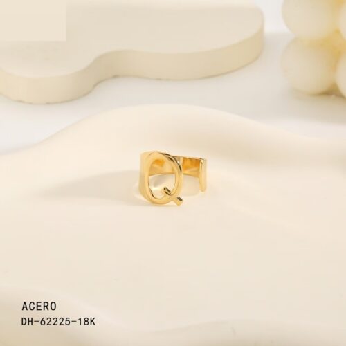Anillo Acero Dorado Inicial “Q”