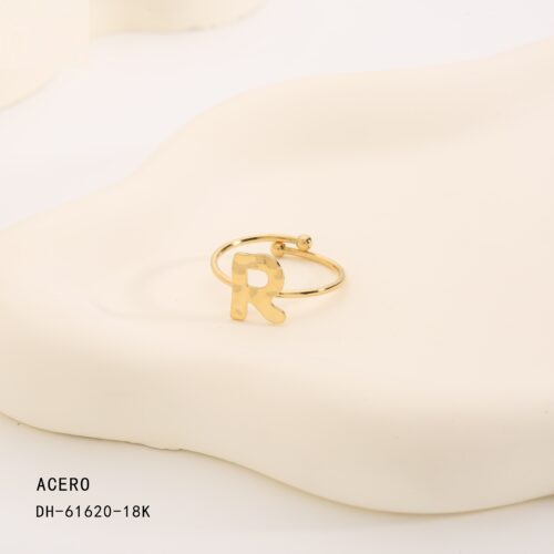Anillo Acero Dorado Inicial “R”