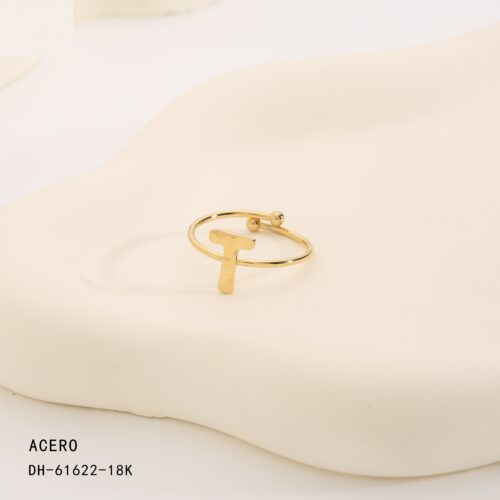 Anillo Acero Dorado Inicial “T”