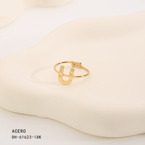 Anillo Acero Dorado Inicial “U”