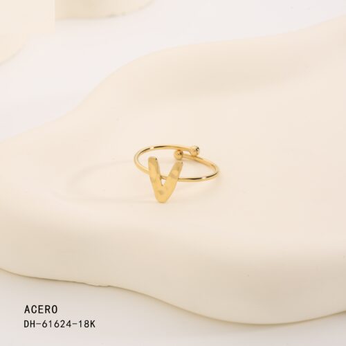 Anillo Acero Dorado Inicial “V”