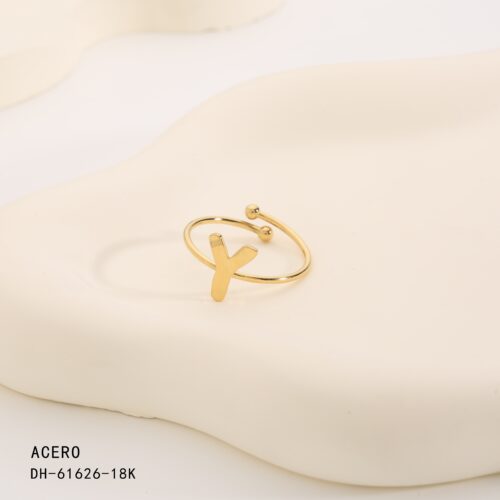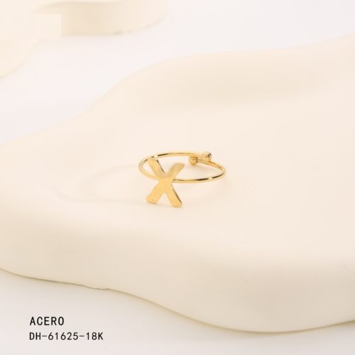 Anillo Acero Dorado Inicial “X”