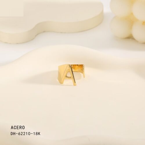 Anillo Acero Dorado Inicial “A”
