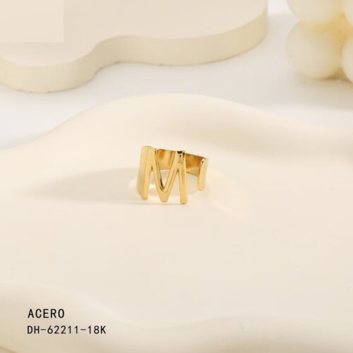 Anillo Acero Dorado Inicial “M”
