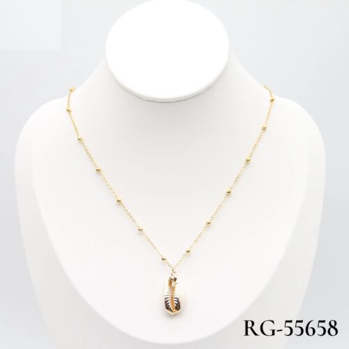 Collar Bolitas Acero Dorado Colgante Concha