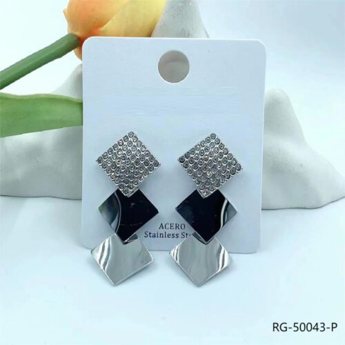 Pendientes Acero Plateado Rombos