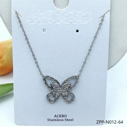 Collar Acero Plateado Mariposa