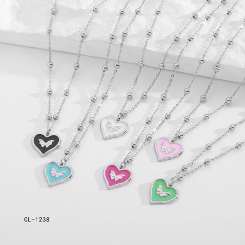 Collar Acero Plateado Mariposa